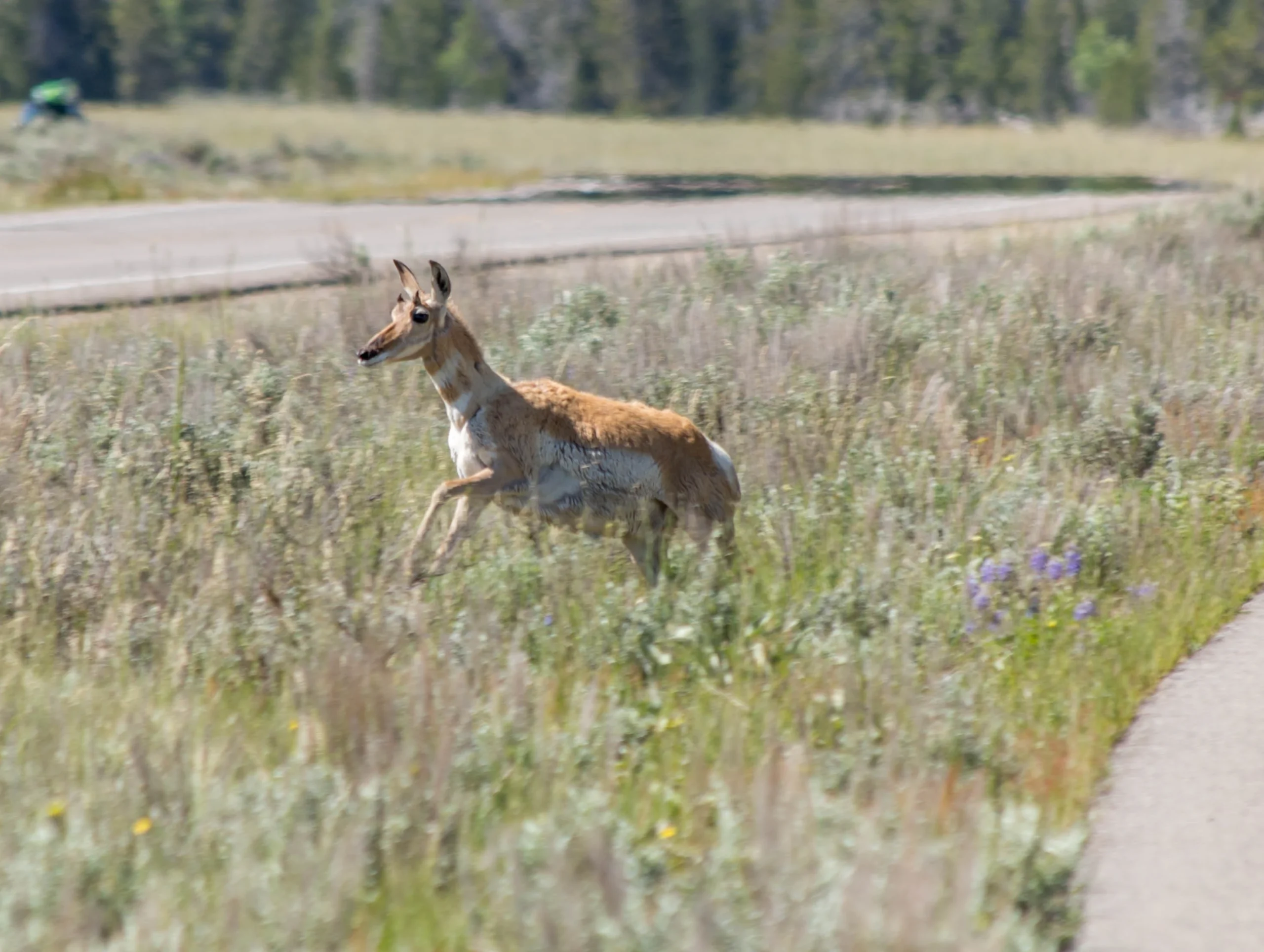 Grand Teton National Park is one of the most iconic of the U.S. National Parks, and has amazing mountain views in almost every foot of the 310,000 acres. Grand Teton has an awesome variety of forest, lake, and river habitats that are home to an equally large variety of animal species. Elk, moose, bear, wolves, deer, bighorn sheep, pronghorns, and many other species are commonly seen in the park. We saw so many of them, they were jumping for joy to see us visiting the park! 🙂